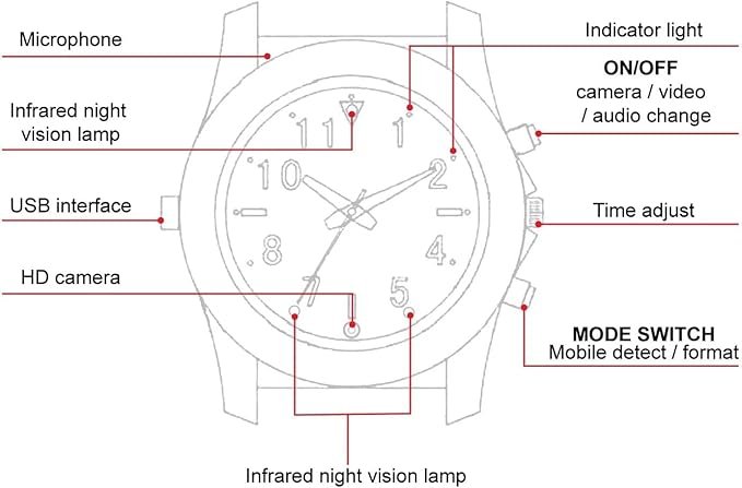 - It is not only a men’s fashionable wearable stainless steel watch with an adjustable strap that fits your wrist, but also comes with a mini camera. The lens is not clear and it is difficult for others to notice that this is a camera.