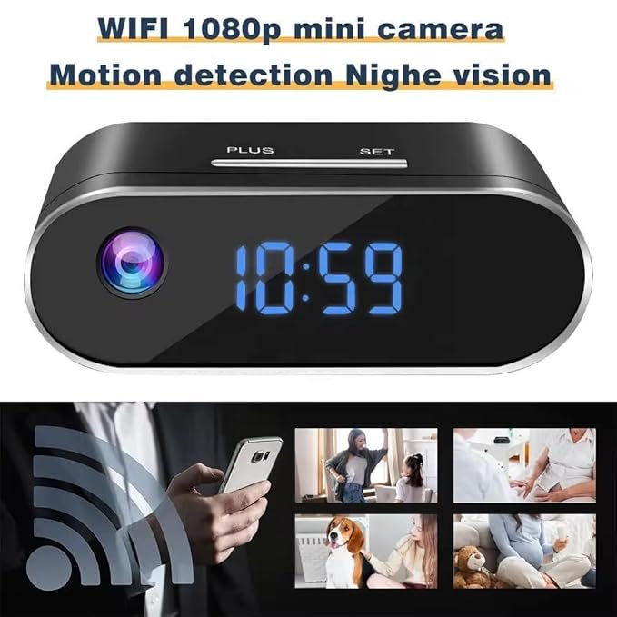 WiFi 4k Full HD Video Audio Live View in Smartphone Night Vision, Motion Detection Security Digital Table Clock