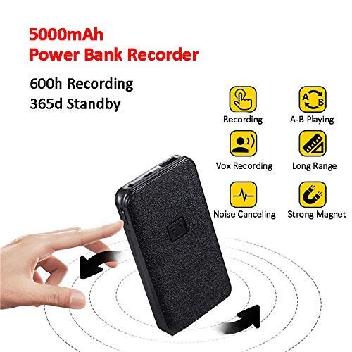 Small portable sound recorder wireless voice recorder One-click Recording activated Power Bank with USB 5000mah ( 1 Year Warranty )